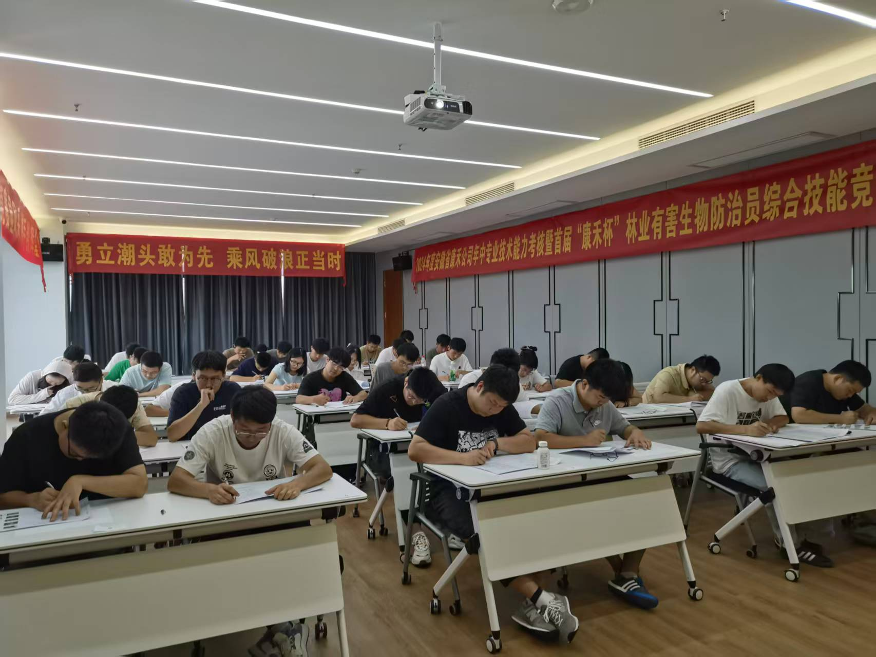 理论知识考核涵盖林业生物识别、监测预报技术、防治政策法规及综合管理策略,全面检查选手的理论功底。